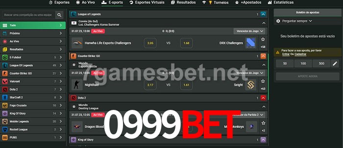O 0999Bet oferece uma grande seleção de opções de apostas em e-sports com probabilidades competitivas